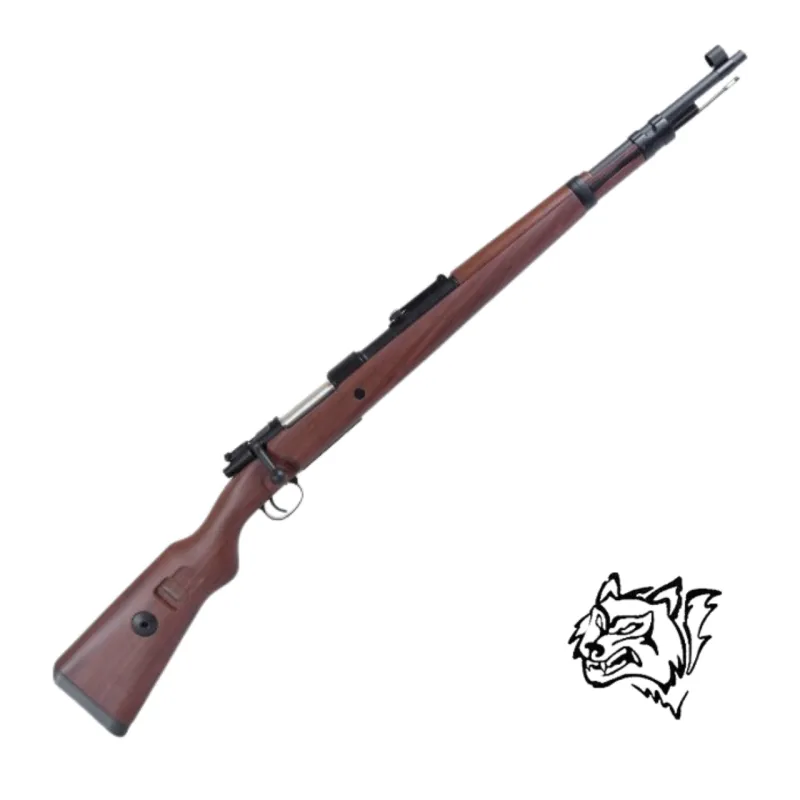 El francotirador Kar98K de Snow Wolf es una réplica de airsoft basada en uno de los rifles más icónicos de la historia. Este modelo destaca por su funcionamiento de cerrojo (muelle), ofreciendo una experiencia realista en cada disparo y una gran precisión en partidas de larga distancia.