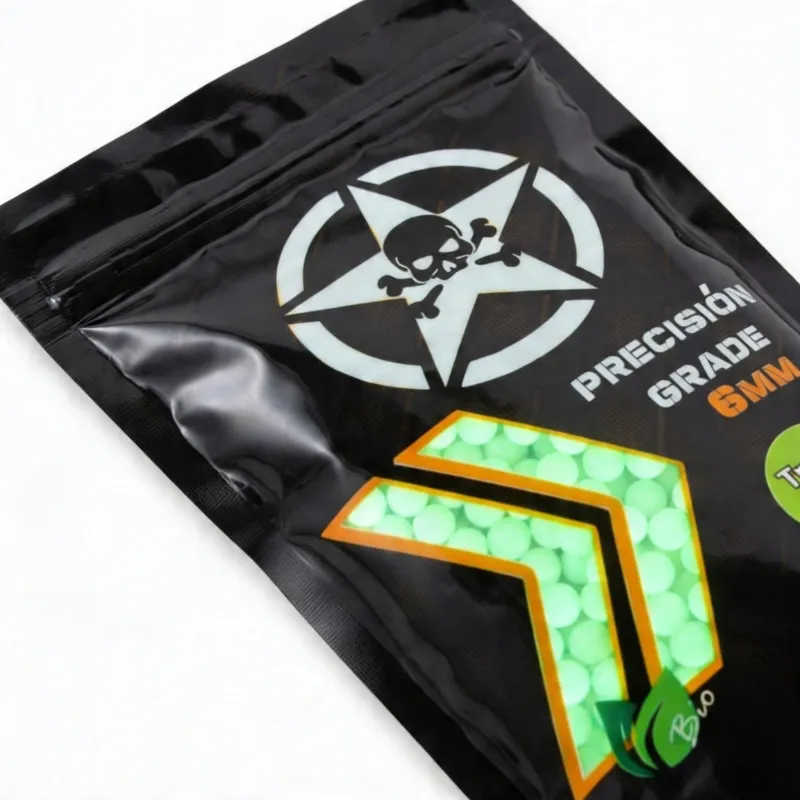 Fabricadas con materiales 100% biodegradables, estas BBs son ideales para partidas en exteriores, cumpliendo con normativas de campos que exigen munición ecológica.