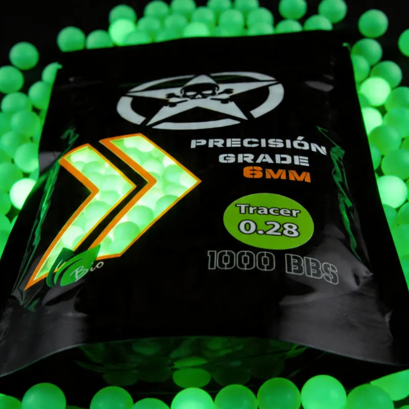 Bolas Trazadoras 0.28g Biodegradables que se Iluminan en la Oscuridad - AirsoftYecla