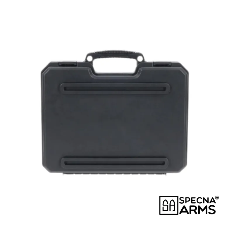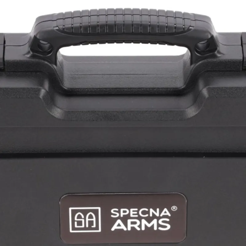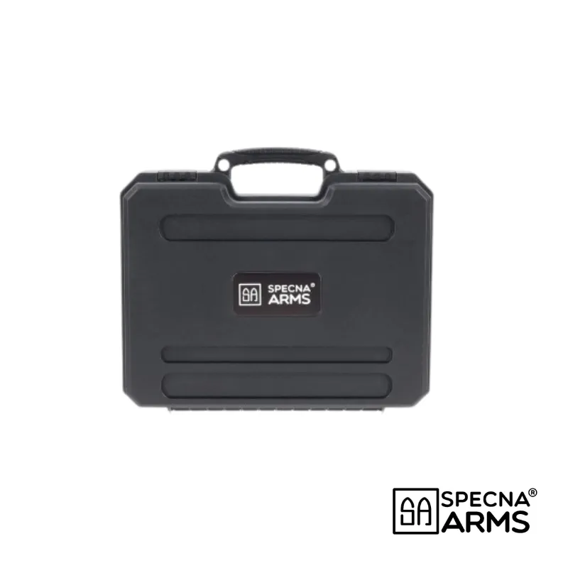 El frontal del estuche está decorado con el logotipo oficial de Specna Arms, aportando un acabado profesional y una imagen cuidada. Este detalle refuerza la identidad de una marca reconocida por la calidad de sus productos y su atención al detalle.
