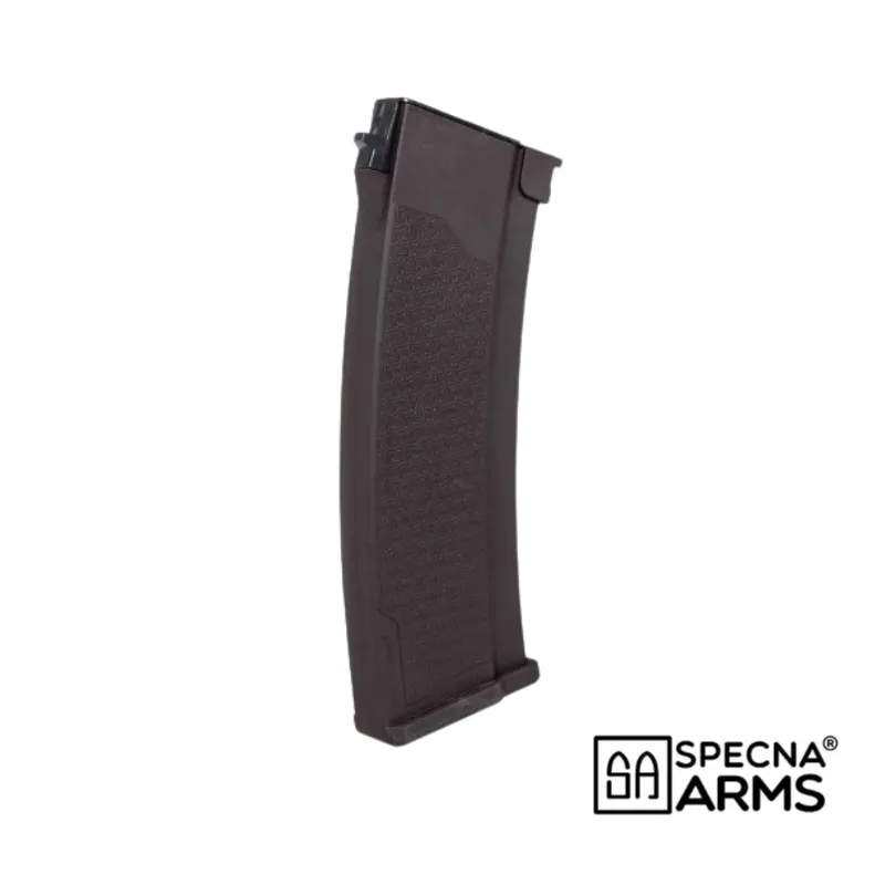 Este cargador está diseñado para réplicas Specna Arms de la serie J y es compatible con plataformas AK equivalentes. Un encaje correcto mejora la consistencia del conjunto y ayuda a evitar fallos de alimentación.
