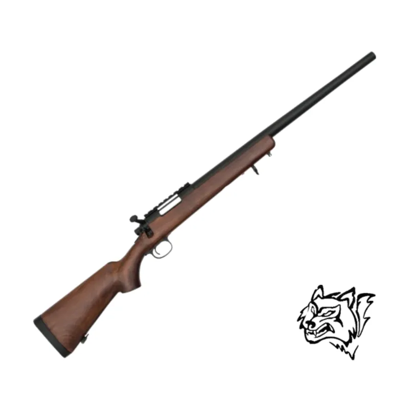El rifle de francotirador Snow Wolf VSR-10 con madera auténtica es una réplica diseñada para jugadores que buscan máxima precisión y una estética realista. Su construcción combina metal y madera natural, ofreciendo una experiencia sólida, estable y muy cercana a un rifle real.