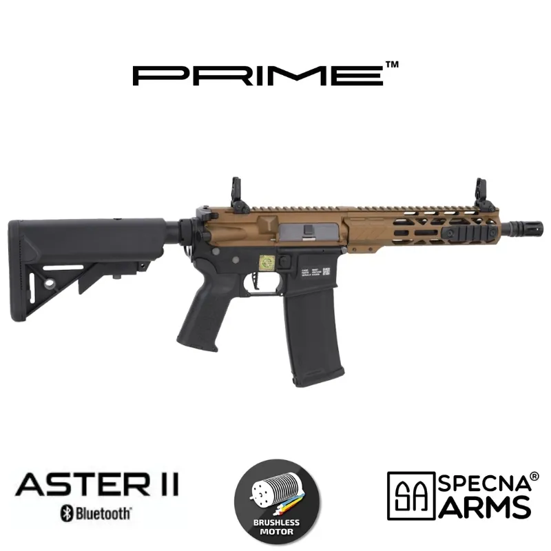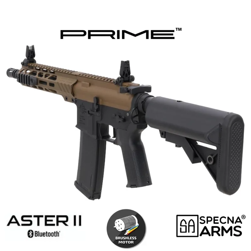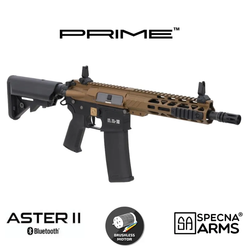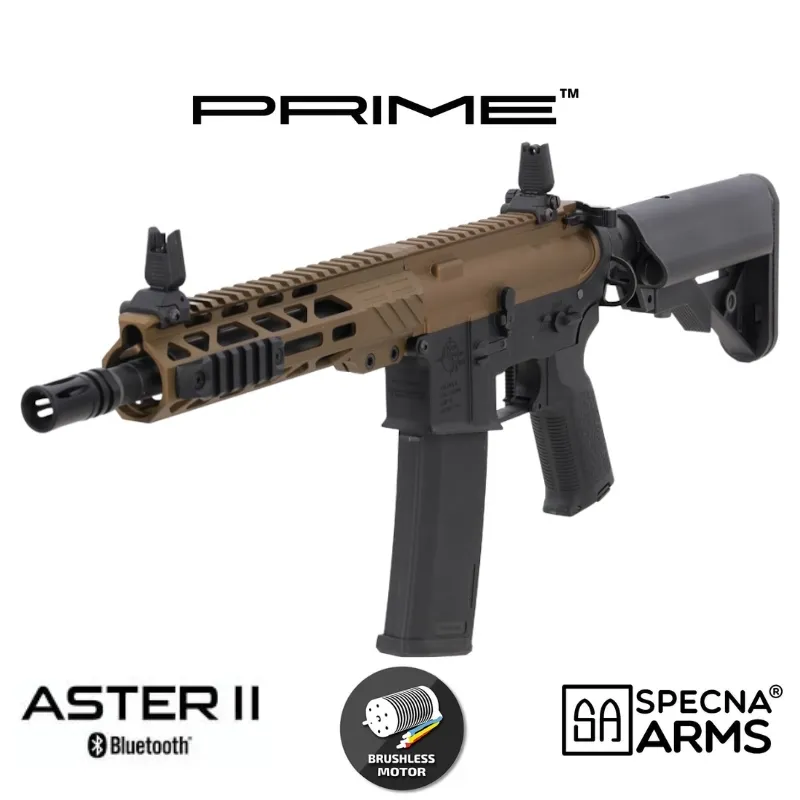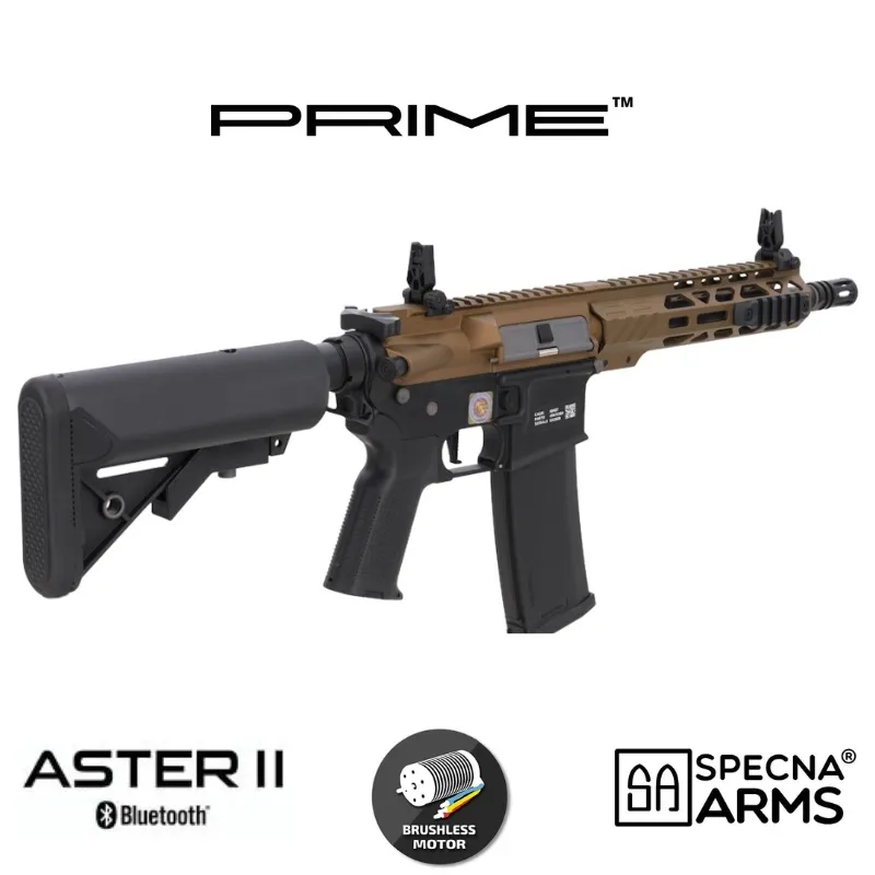 El Specna Arms RRA SA-P25 Prime Aster II en acabado Chaos Bronze es un fusil eléctrico de airsoft de alto rendimiento diseñado para jugadores que buscan una réplica moderna, ligera y con componentes internos de primer nivel. Este modelo forma parte de la serie Specna Arms Prime, una gama que combina la experiencia de las conocidas EDGE y EDGE 2.0 con nuevos desarrollos internos orientados a ofrecer el máximo rendimiento sin necesidad de tuning adicional.