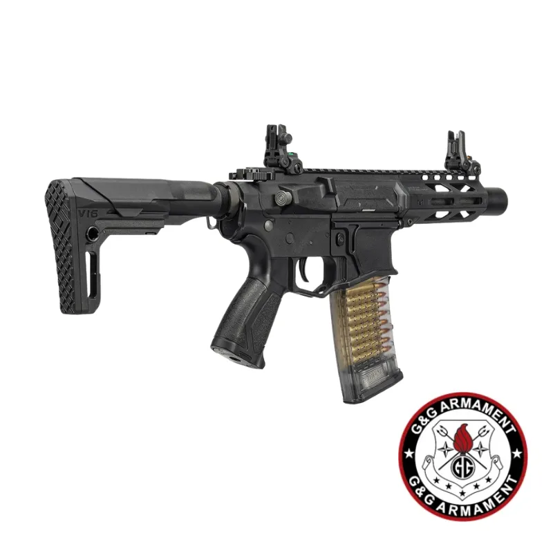 La serie CM16 de G&G es una de las más valoradas del mercado por su fiabilidad, precisión y excelente relación calidad-precio. Este modelo en particular está diseñado para ofrecer el máximo rendimiento en escenarios de combate cercano, con una estética agresiva y una plataforma personalizable que se adapta a cualquier estilo de juego.