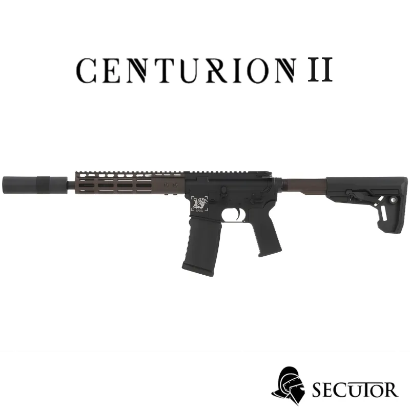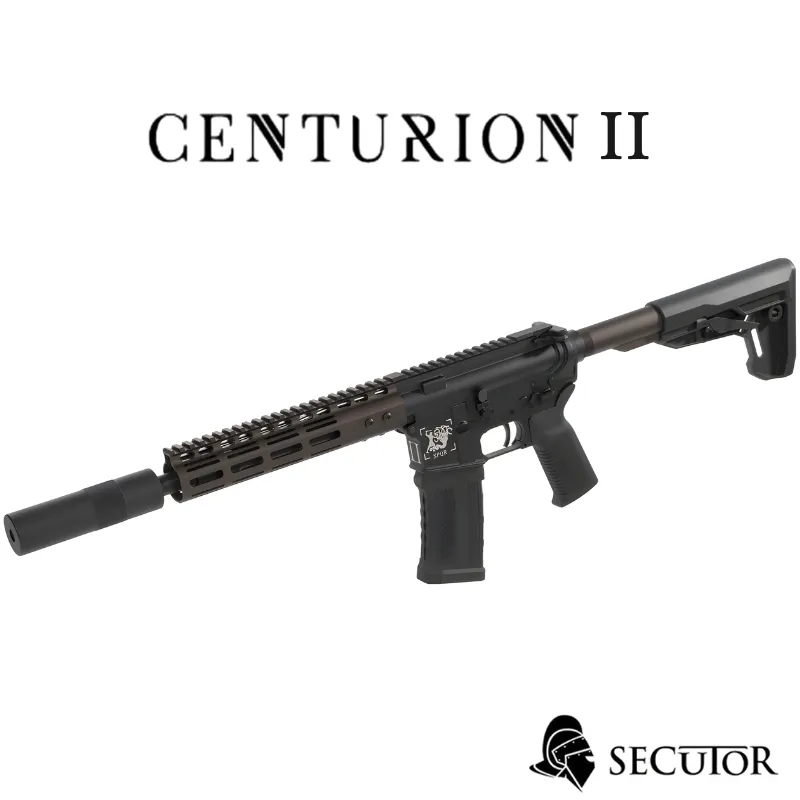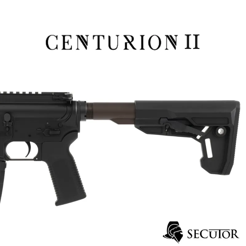 En el apartado estético, la Secutor Centurion II destaca por su acabado dual tone en negro y bronce, que le confiere una imagen moderna y profesional. El guardamanos estilo Noveske con sistema M-LOK permite la instalación de accesorios tácticos, manteniendo un perfil limpio y funcional.