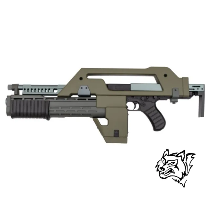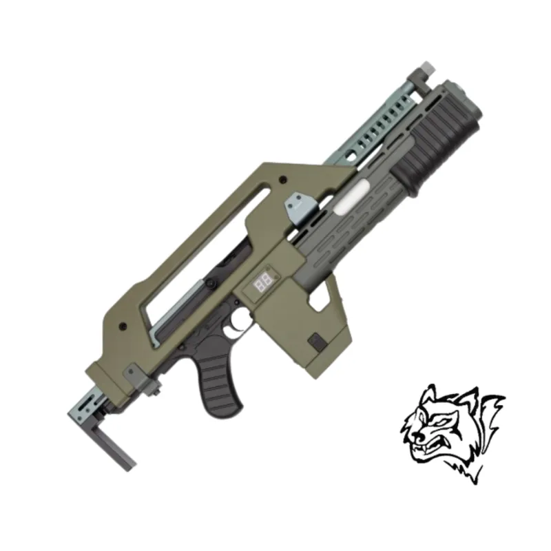 El fusil eléctrico Snow Wolf M41A Pulse en color verde oliva es una réplica de airsoft inspirada en el icónico rifle futurista de la película Alien. Diseñado sobre la base del M1A1 Thompson, este modelo combina estética cinematográfica con funcionalidad real dentro del campo de juego, ofreciendo una experiencia diferente y llamativa.