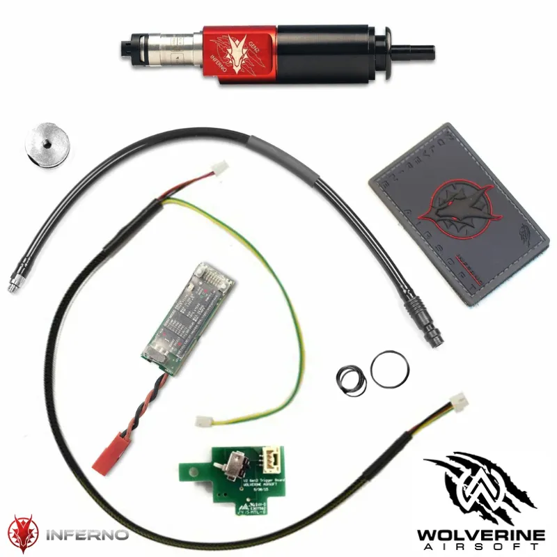 Este kit incluye el reconocido motor Inferno Gen2 junto con un gatillo electrónico programable, lo que permite ajustar los parámetros principales de la réplica directamente desde el propio gatillo. De esta forma, el usuario puede configurar tanto la cadencia de tiro como la potencia de disparo de manera intuitiva, sin necesidad de herramientas externas ni software adicional.