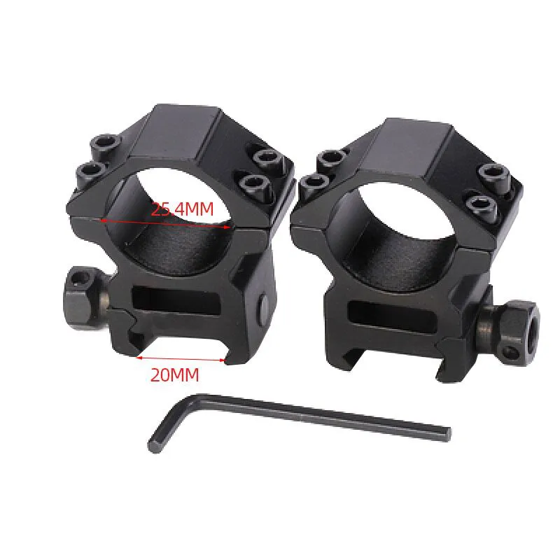 Mejora la fijación de tu visor con este par de monturas tácticas de aluminio, diseñadas para tubos de visor de 25.4mm (1 pulgada) y rieles estándar Picatinny/Weaver de 20mm. Fabricadas con materiales resistentes, ofrecen un montaje seguro y profesional para cualquier configuración táctica o deportiva.