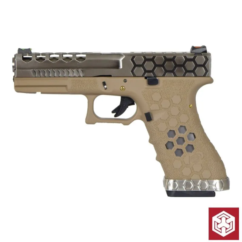 PISTOLA AW CUSTOM G17 HEX-CUT GBB - TAN/SILVER