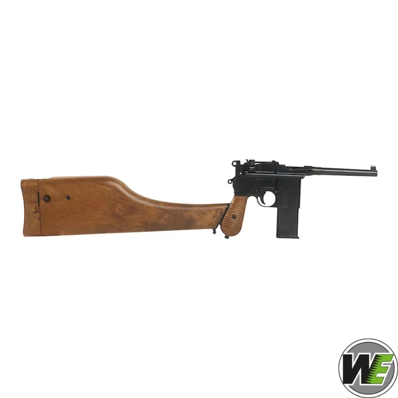 Descubre la pistola WE 712 Black, una impresionante réplica basada en la mítica Mauser C96, diseñada para ofrecer una experiencia de juego realista, potente y visualmente impactante. Fabricada con corredera y cuerpo completamente metálicos, incorpora una culata de imitación a madera que también funciona como funda, haciendo de esta réplica una joya tanto para jugadores como para coleccionistas.