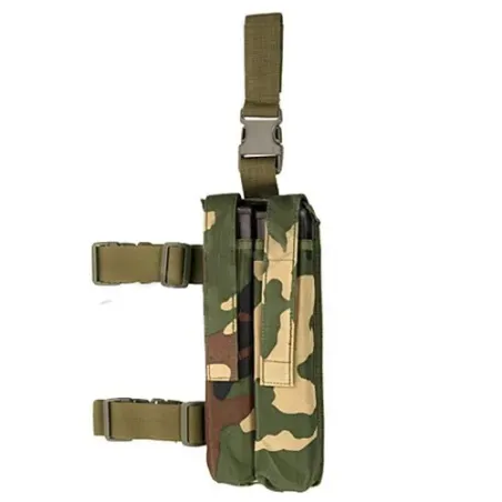 Bolsillo porta cargadores doble para pierna en color Woodland, para cargadores de fusil P90, fabricado en Nilón 600D.