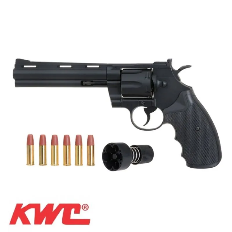 El revólver KWC mod. R3 es una réplica de alto realismo diseñada para los amantes de las armas de aire comprimido. Con un cañón de 6 pulgadas, este revólver combina potencia, precisión y robustez gracias a su construcción full metal.