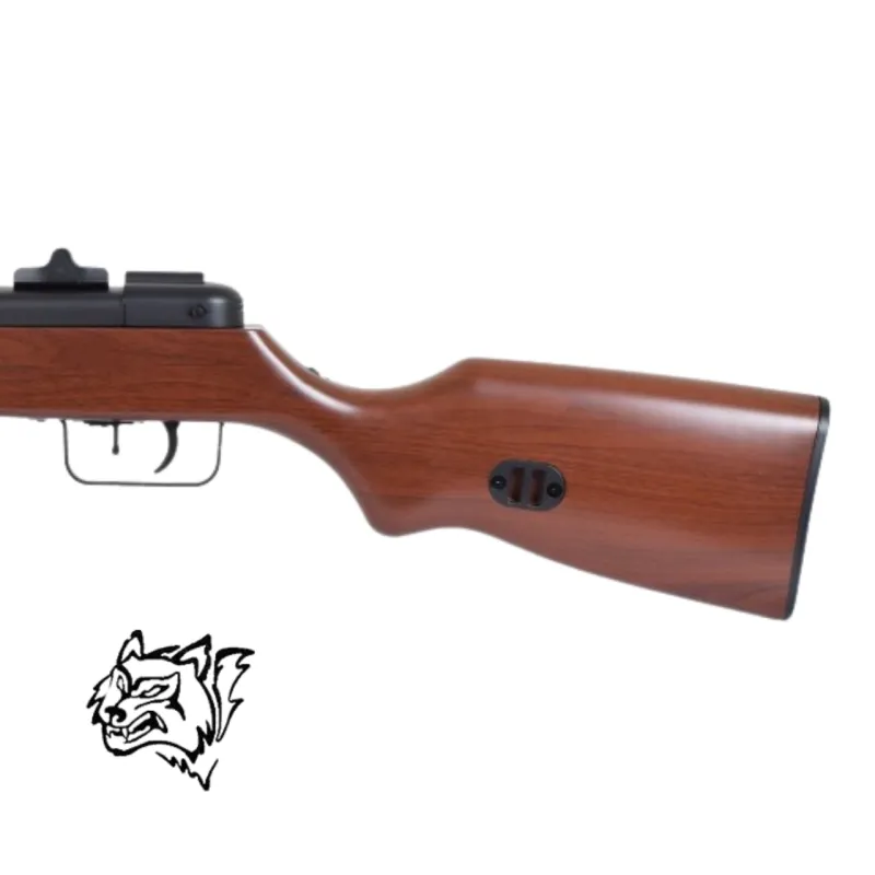 Esta réplica está fabricada con una sólida estructura metálica, acompañada de piezas en imitación de madera que reproducen fielmente el aspecto original. El resultado es un subfusil resistente, duradero y visualmente muy atractivo para los amantes del airsoft histórico.