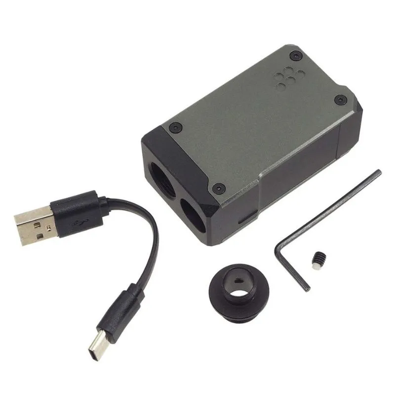 Fabricado en aluminio ligero, este trazador cuenta con un acabado bronce elegante y resistente. Su peso de solo 87g y dimensiones compactas (63x24x37mm) lo convierten en un accesorio imprescindible para cualquier réplica de airsoft.