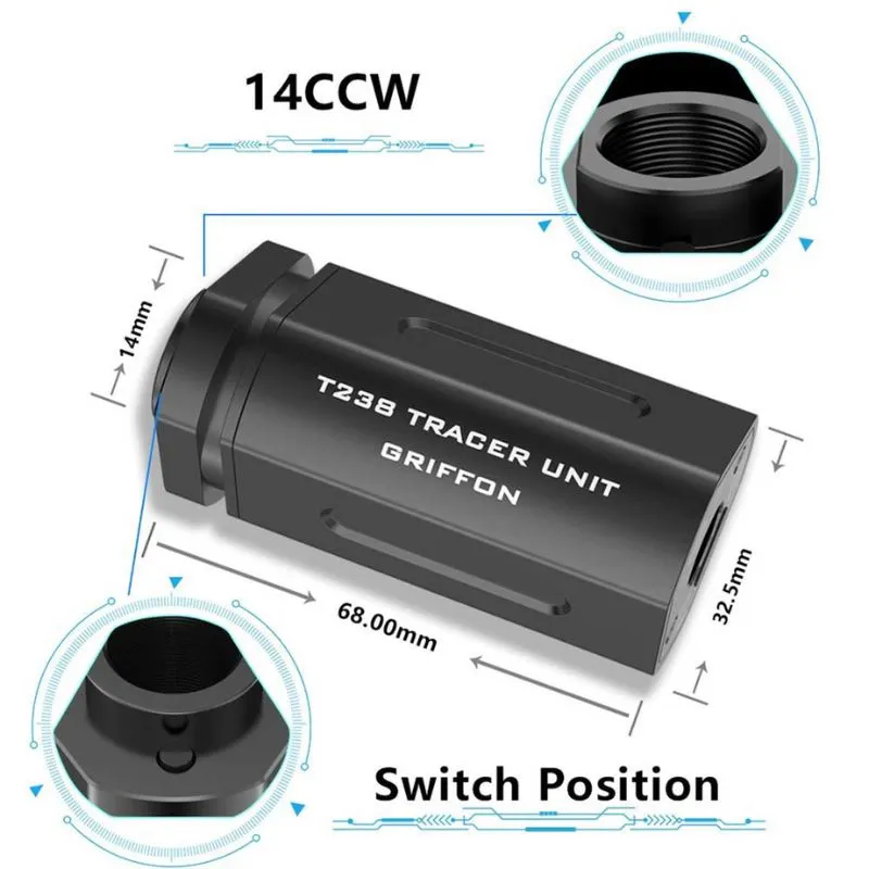 El silenciador trazador T238 Griffon negro es una opción táctica y versátil, diseñada para jugadores que buscan rendimiento, estética agresiva y compatibilidad con todo tipo de réplicas. Su diseño compacto lo hace ideal para pistolas, subfusiles y fusiles, adaptándose perfectamente a cualquier estilo de juego.